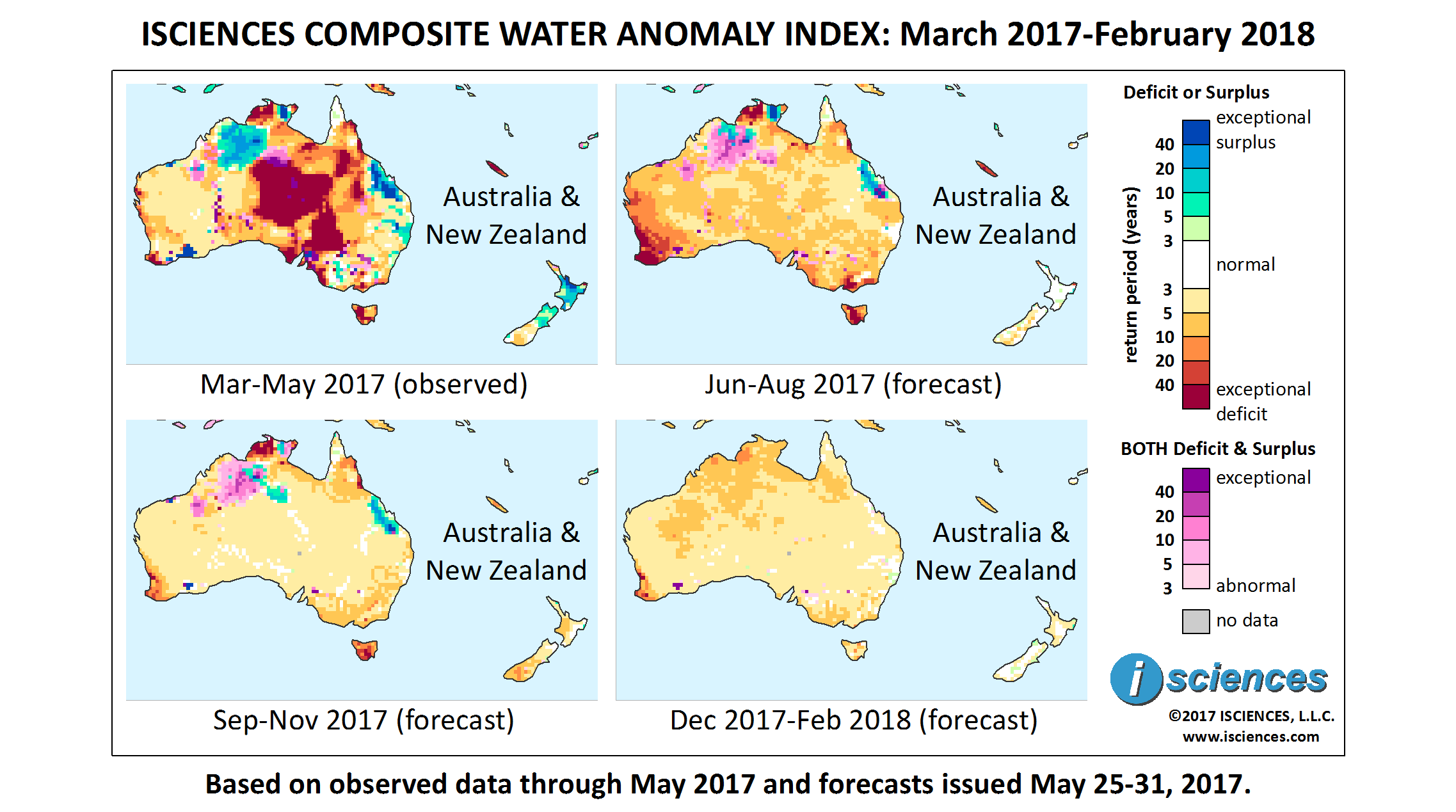 Australia & New Zealand: Water deficits persist in Darwin, Tasmania, Perth, New Caledonia